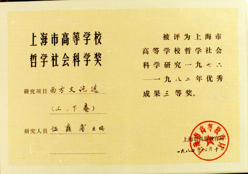 1985年伍蠡甫教授、翁义钦教授合著 | 1983年《西方文论选》(上、下卷)获评 | 1999年《文汇读书周报》上 |