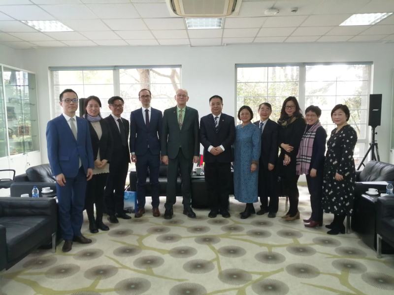 在会面中,我院德文系系主任李双志教授详细展示了德文系的历史、现状、与德国高校与科研机构的主要合作项目以及未来发展方向。对此,总领事先生表示高度认可与赞赏。德文系副系主任沈冲、外教Daniel Simon也参加了会见。