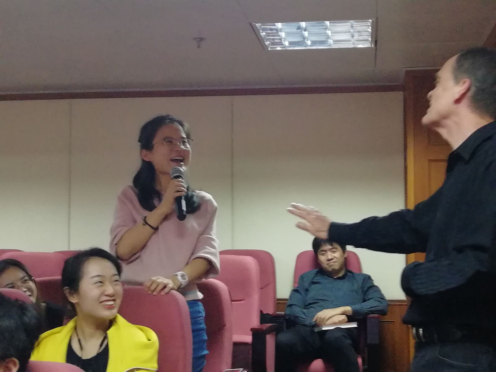 2019年11月4日,中国外文局高级编审David W. Ferguson受邀来到复旦大学文科楼讲演。此次讲座分为上下两场,主题分别为“如何译介中国故事”,“如何译介习近平新时代中国特色社会主义思想”。讲座由陶友兰教授与王炎强博士主持。