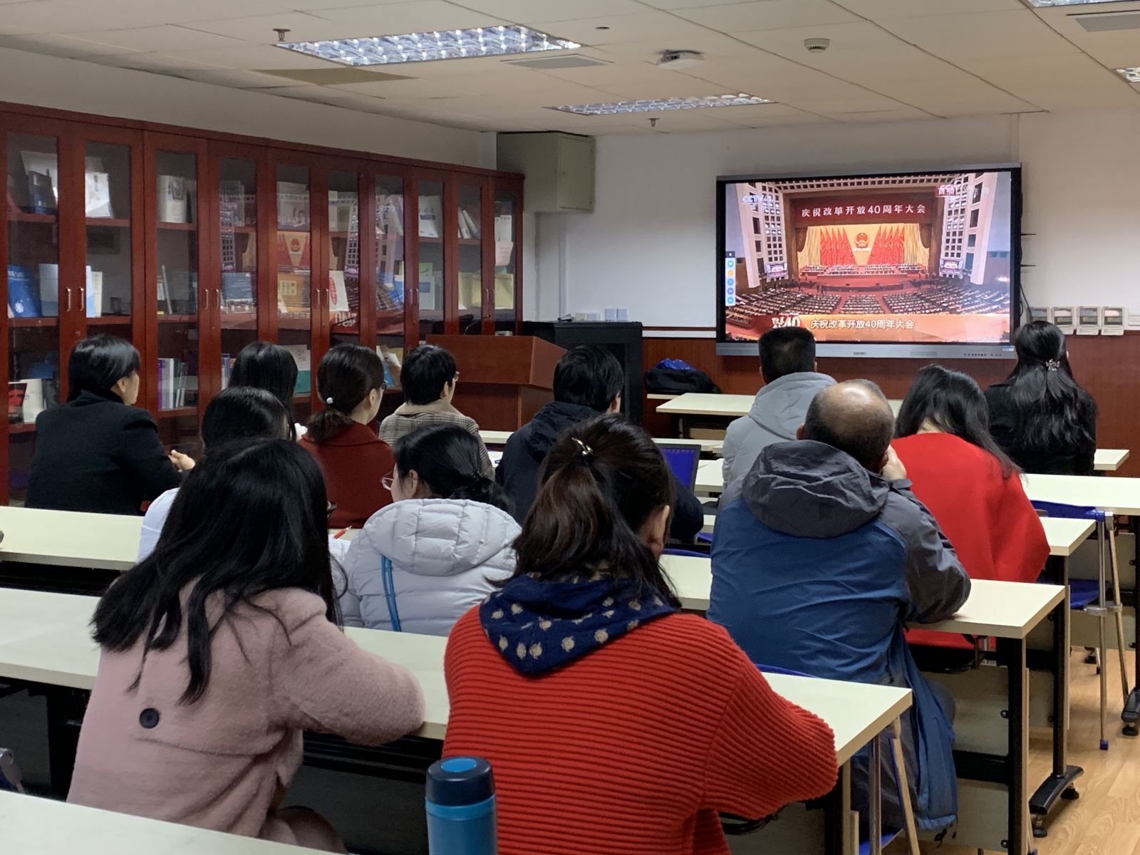 12月18日上午10:00,中共中央、国务院隆重召开庆祝改革开放40周年大会。bet365备用网址 分党委组织师生收看大会直播,学院分党委书记罗英华、分党委委员、教师代表在文科楼424会议室集体收看,部分师生到光华楼102报告厅参加学校组织的集体收看,其他师生也通过各种渠道收看学习。