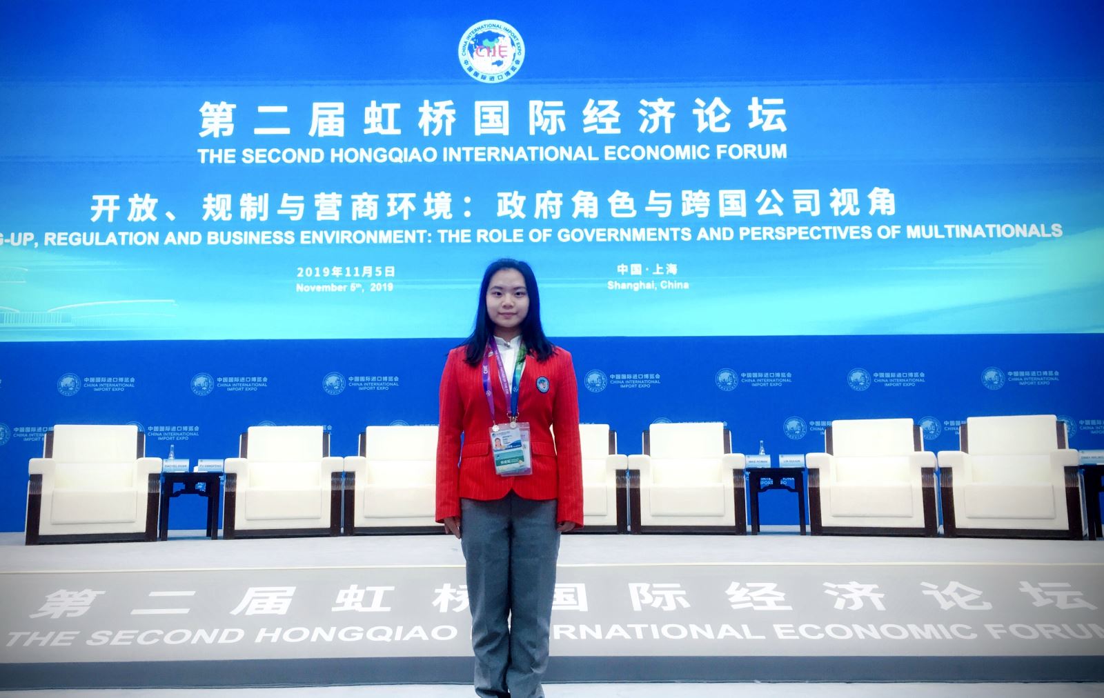 进博会一周的工作,养成了比军训更健康的作息。注册嘉宾组的工作,每天7点发车,9点工作,6点下班,9点睡觉;工作本身也总是断断续续,不知哪天就是办公楼内一天的自修,时不时接起的电话,一句“你好,这里是进博会论坛处”,总还是能让人感受到身为巨大机器的螺丝的重量。11月5日开幕式,见证了凌晨三点的校园,久违的满天星,畅通无阻的高速公路,和彻骨寒冷的徐泾东,结束的一刻,体会到这一选择的幸运。进博会的工作,并不复杂,也并非很有成就感,却从细微之处了解国展的运作,也知道再隆重的场合也不一定处处完美无瑕,工作的同时,仔细地思考和观察,工作结束后,认真地反馈。志愿者的工作,正是在点滴的积累中,收获。