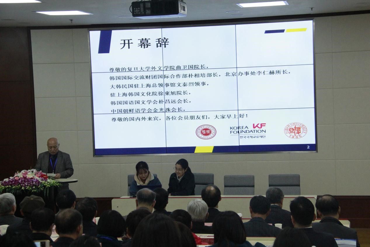 开幕式后,首尔大学权在一教授、尹汝卓教授和复旦大学姜宝有教授进行了精彩的主旨演讲。其中,姜宝有教授针对中国教育部新制定的《高等学校非通用语种类专业本科教学质量国家标准》进行了深入的解读和分析,对韩国语专业在培养方案、课程建设、学科建设、大类招生等方面面临的新变化做出了前瞻性的分析和展望。
