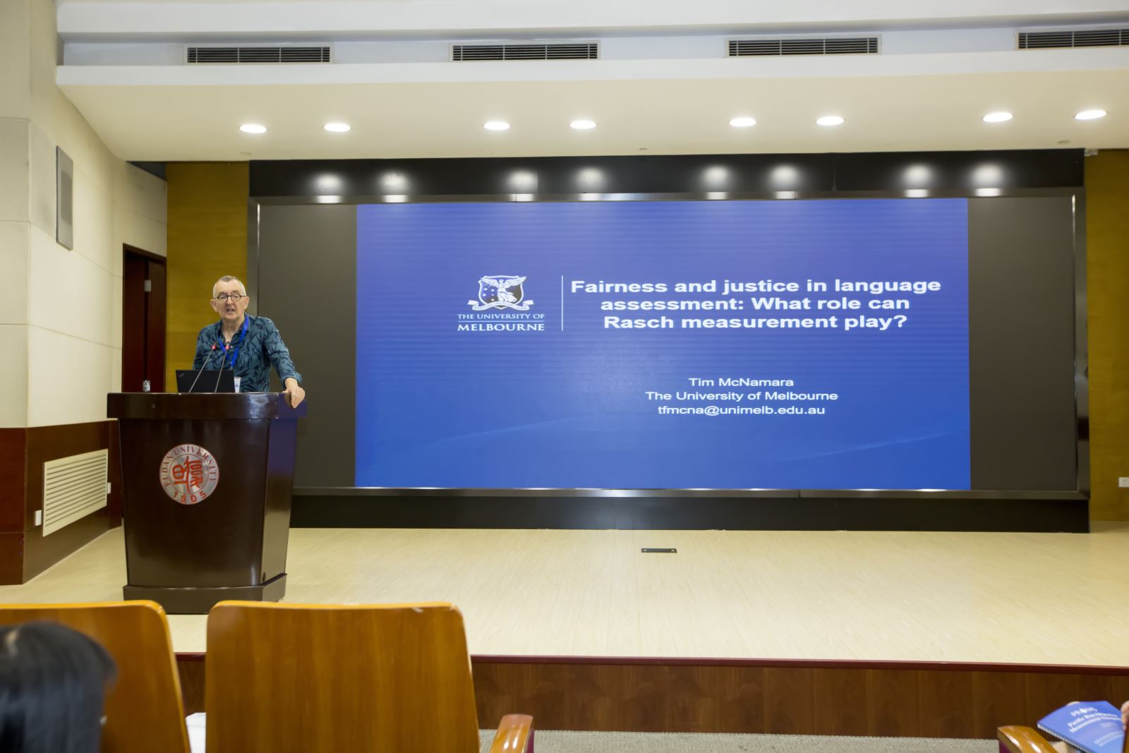 Tim McNamara教授在开场主旨报告中回顾了Rasch测量理论在语言测评领域中的应用,以多个例证说明Rasch模型在推动语言测试公平性和社会正义等方面所发挥的重要作用。