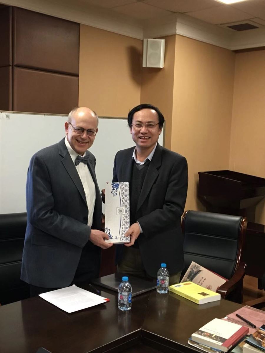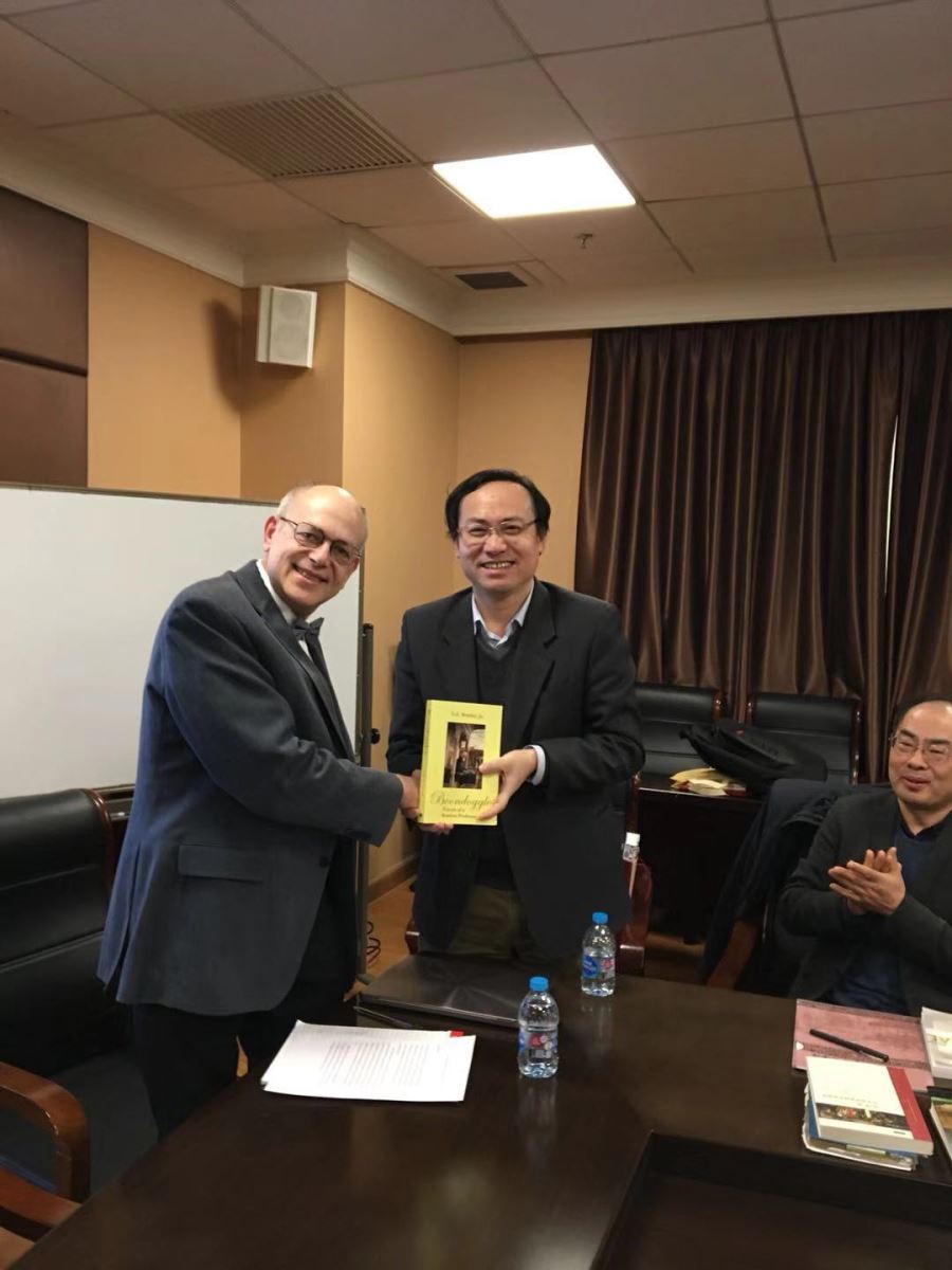 3月12日,法国凡尔赛大学教授Alan S Kahan来复旦大学历史系讲学。讲座前举行了简短的赠书仪式。Kahan教授向bet365备用网址 赠送了其岳父G E Bentley Jr教授(1930-2017)撰写的回忆录Boondoggles。G E Bentley Jr教授曾作为富布莱特学者来复旦大学讲学一年(1982-1983),该回忆录有一节记载了他在复旦外文系教书的情况。