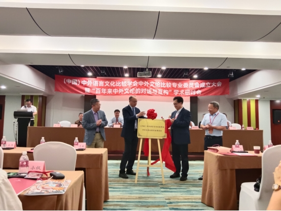 陈志敏、吴笛、周启超、汪洪章共同为中外文论比较专业委员会的成立揭牌